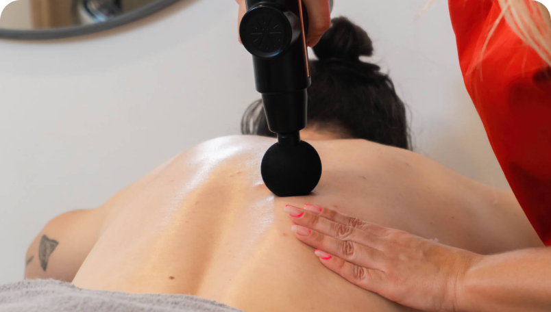 Nuestra terapia con pistola de percusión es la mejor opción para disminuir la percepción de dolor, tensión y fatiga muscular.